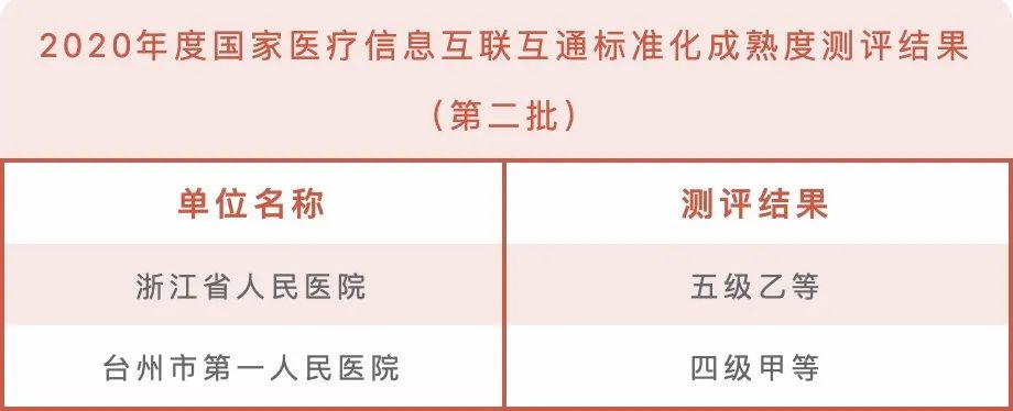 浙江和仁科技股份有限公司(以下簡稱“和仁科技”)客戶浙江省人民醫(yī)院順利通過五級乙等測評、臺州市第一人民醫(yī)院順利通過四級甲等測評。